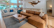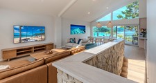 This generous four-bedroom villa includes three bedrooms on the entry level, each with split-king beds, robes, air-conditioning and smart TVs.