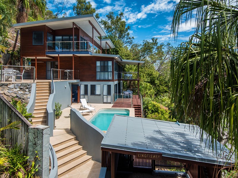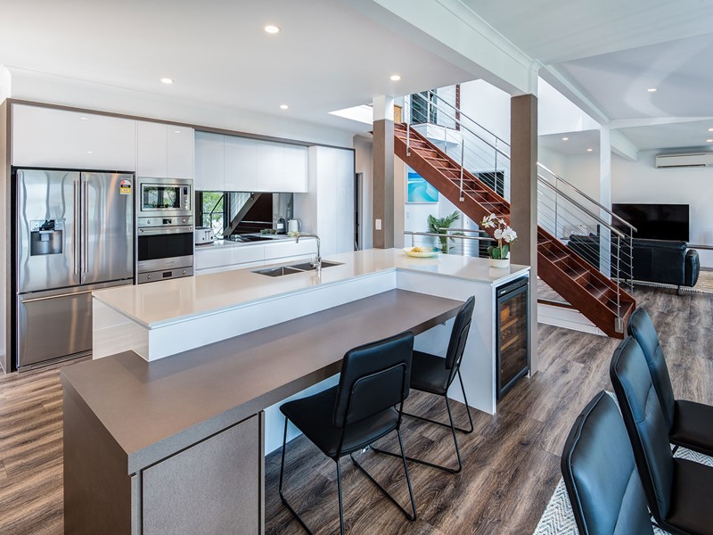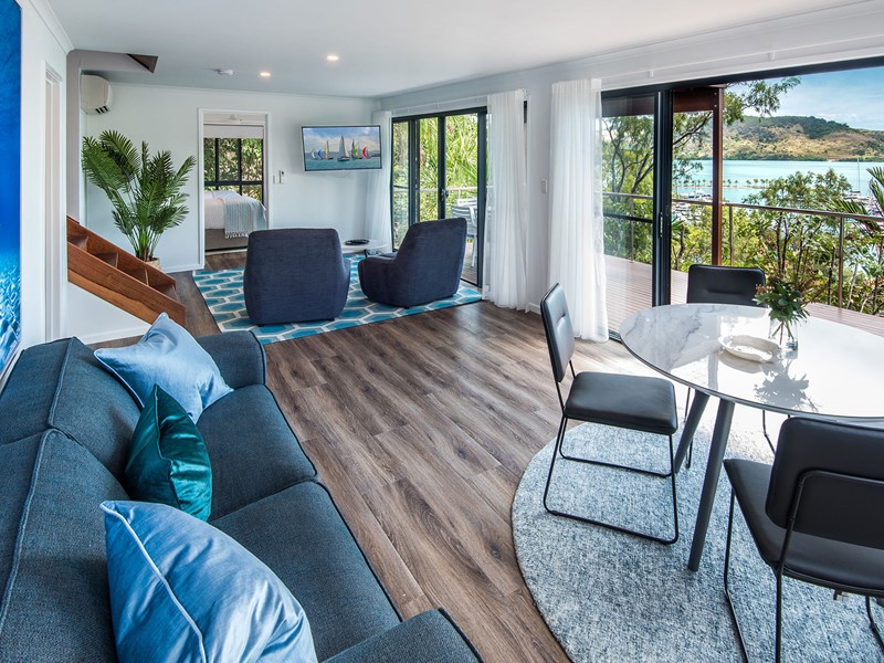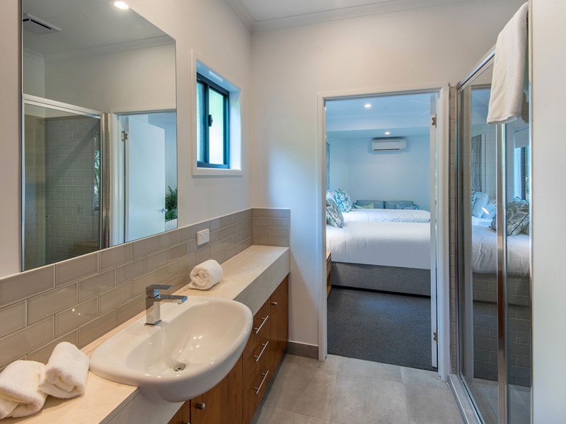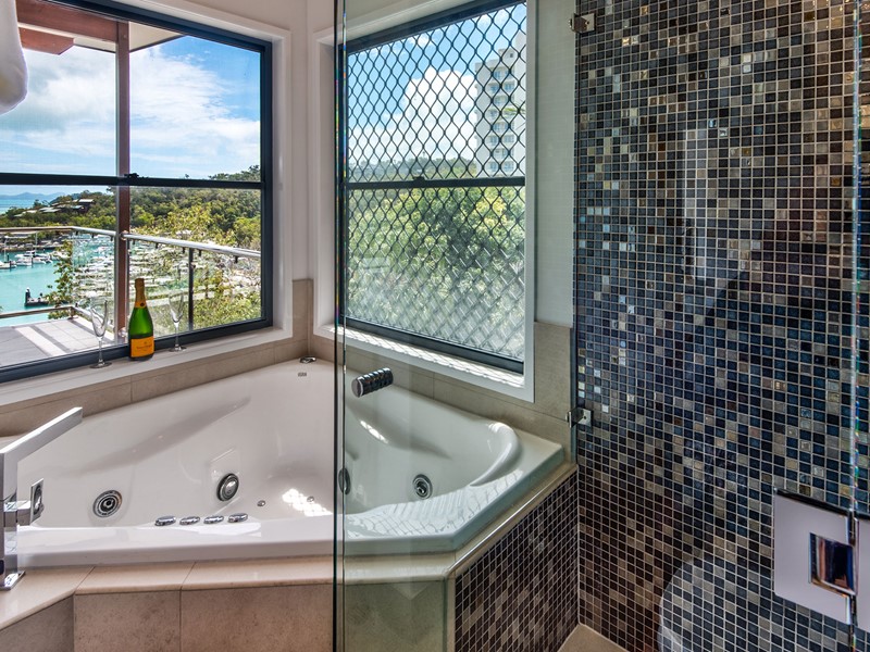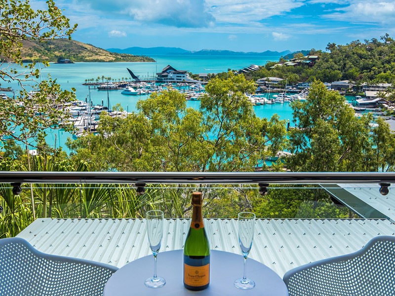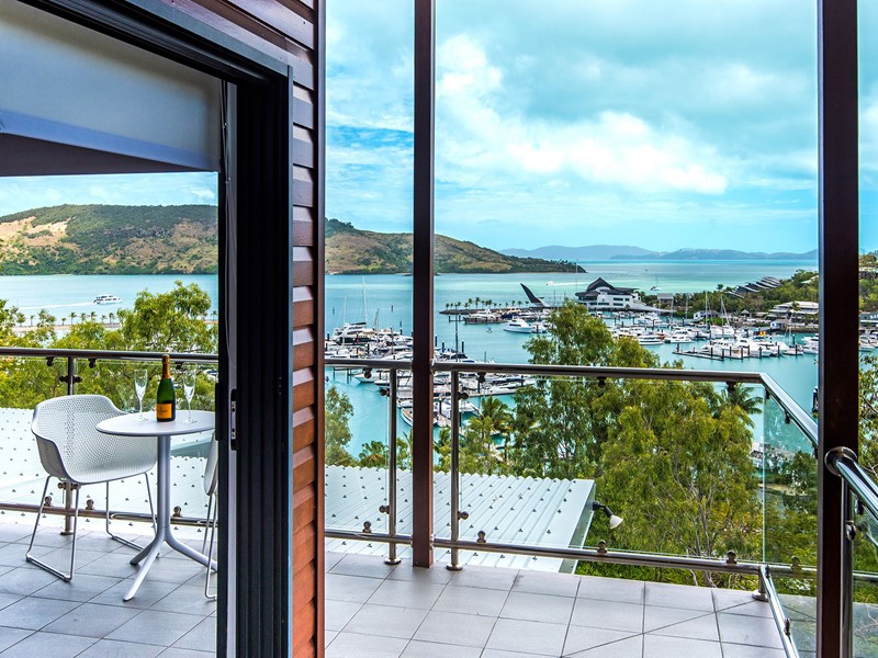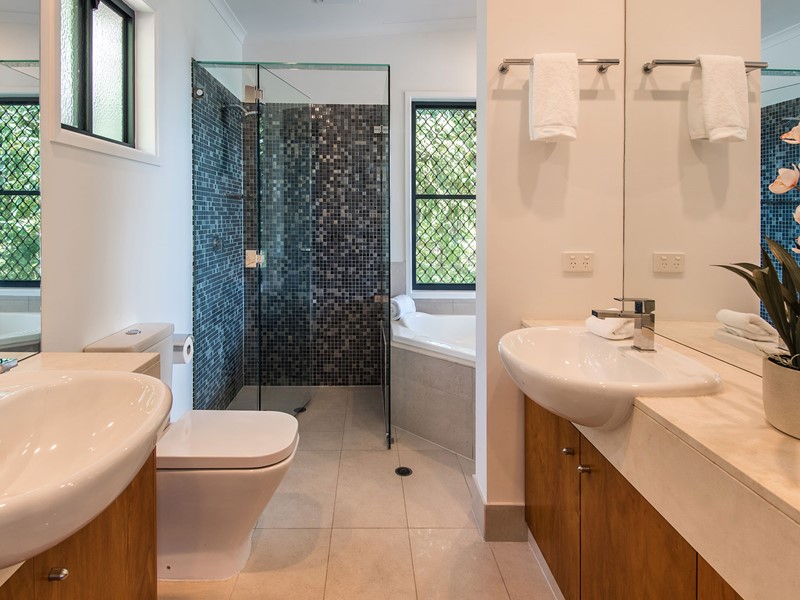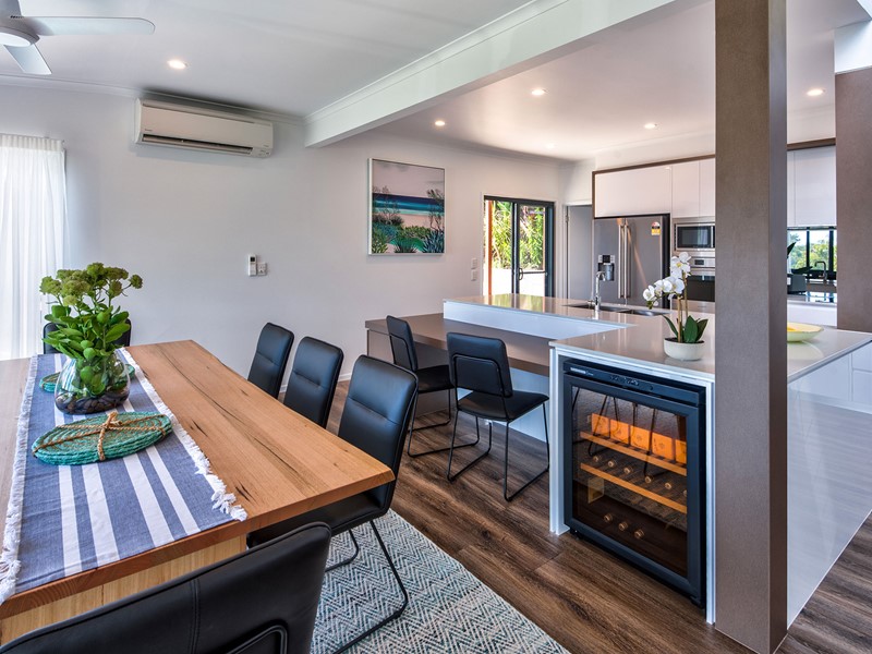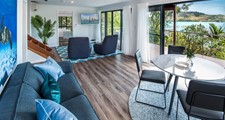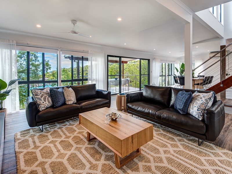 This modern home offers an abundance of balconies from which to enjoy views of the Whitsunday waters. A large terrace flows from the main living area and features a BBQ and outdoor dining setting for eight people.