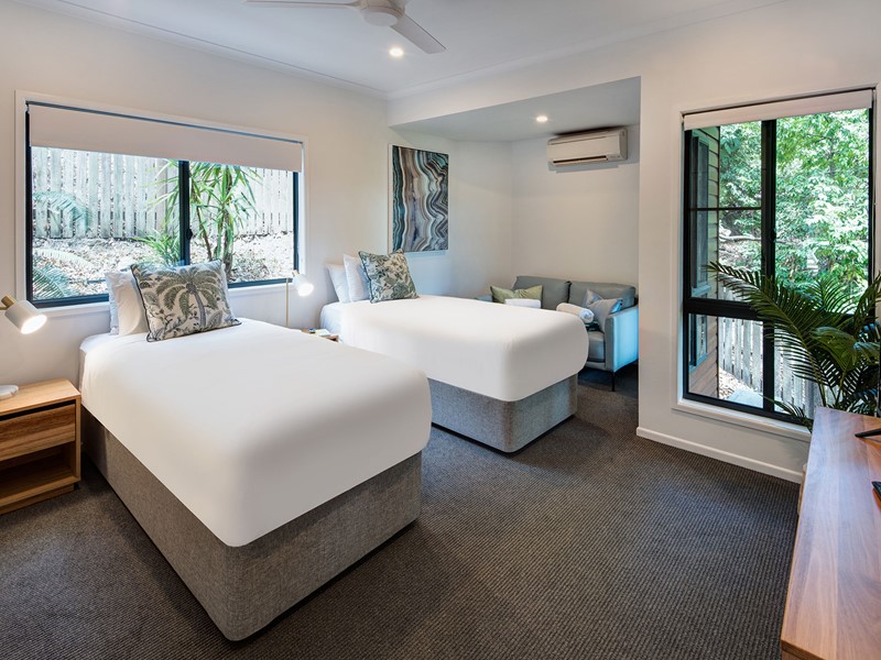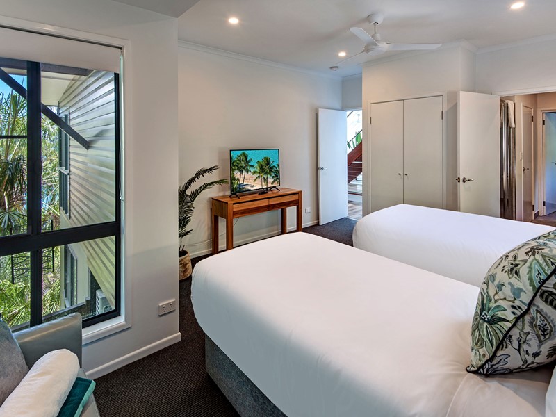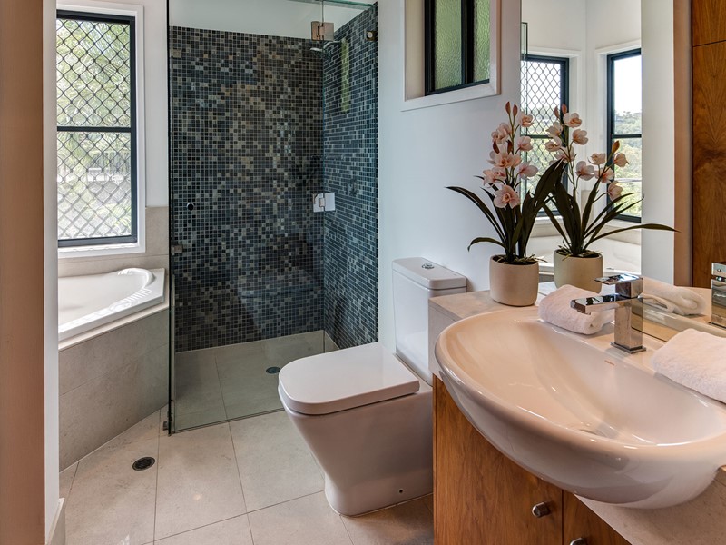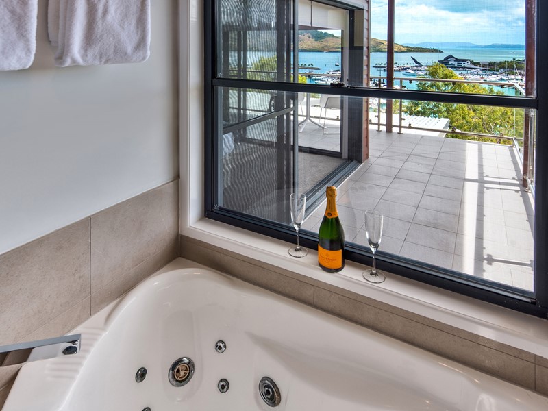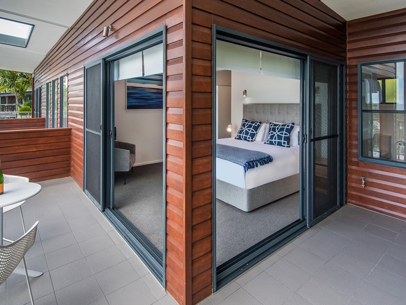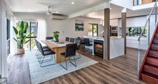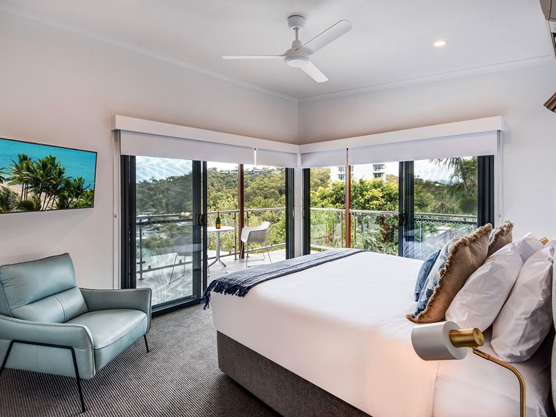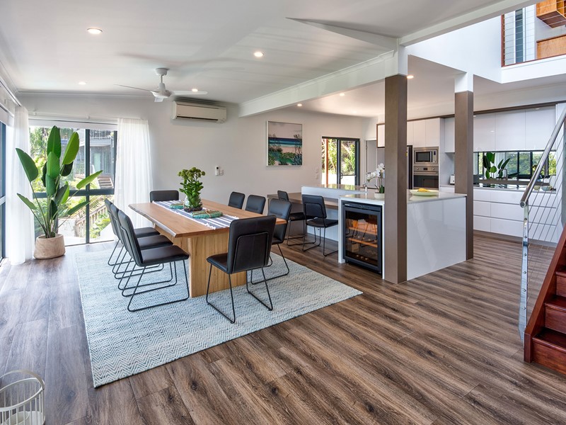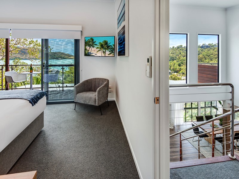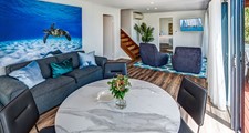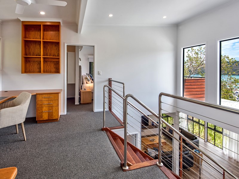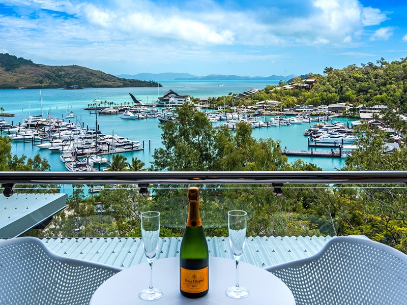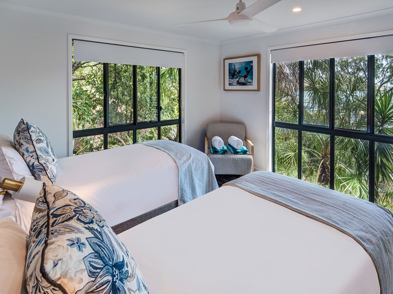 This modern home offers an abundance of balconies from which to enjoy views of the Whitsunday waters. A large terrace flows from the main living area and features a BBQ and outdoor dining setting for eight people.