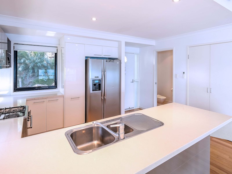 The apartment offers stunning views across native bushland to the turquoise Whitsunday waters.