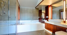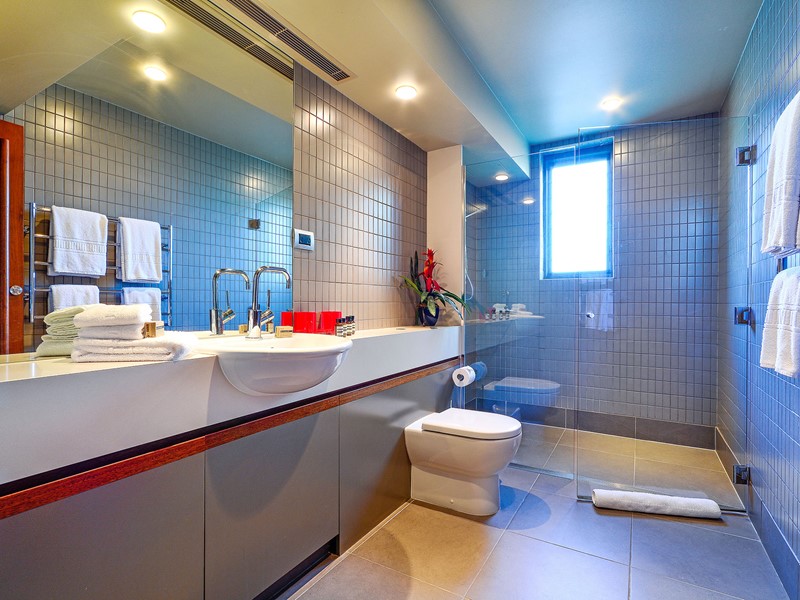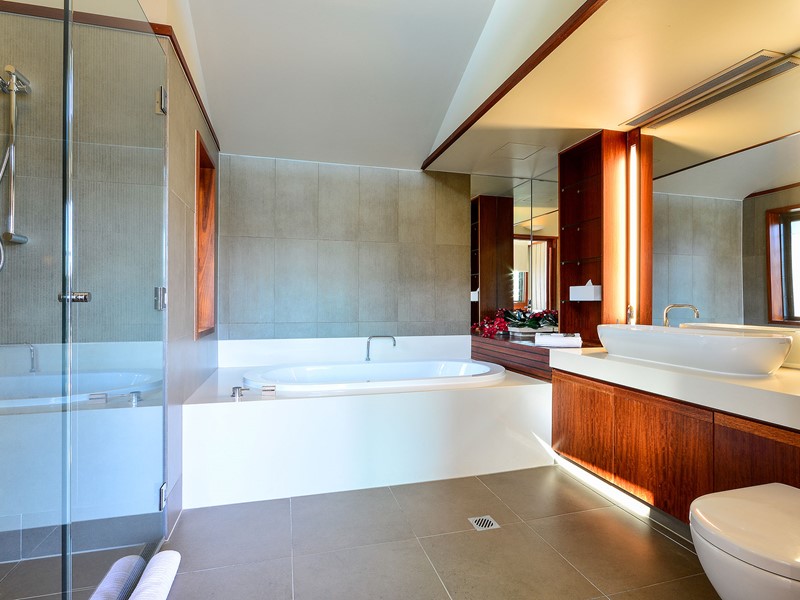 There are four bedrooms in Villa 3. The master suite includes a walk-in robe and a bathroom. The second and third bedrooms have their own ensuite, and the fourth bedroom can double as a media room if preferred. This property includes a selection of 50ml Aesop products (1 x Shampoo, 1 x Conditioner, 1 x Body Cleanser, and 1 x Body Balm) provided in all bathrooms. There are 33 stairs inside.