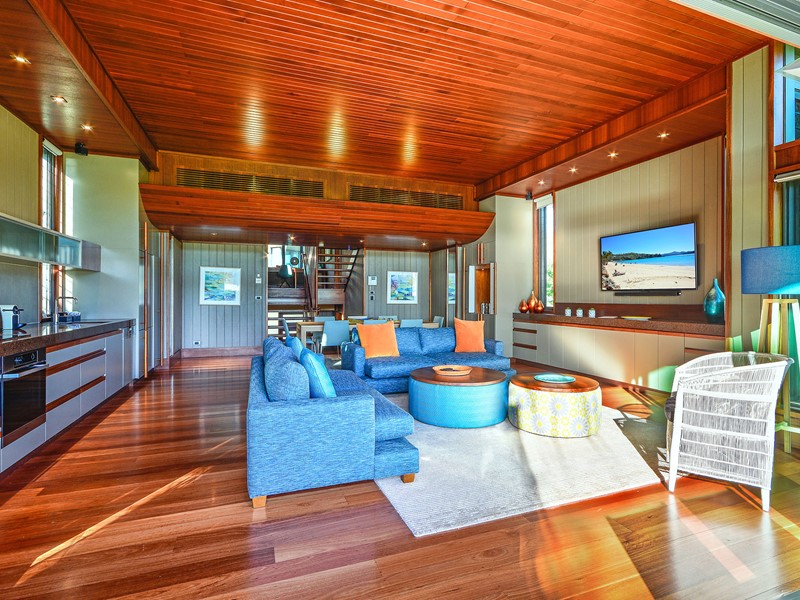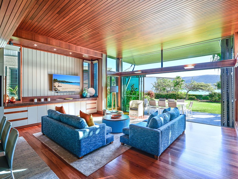 Villa 3 offers magnificent views of the waterfront lagoon pool, as well as the Hamilton Island Yacht Club and the turquoise waters of Dent Passage. A large, comfortable living area flows directly onto the waterfront reserve and provides easy access to the shared lagoon pool.